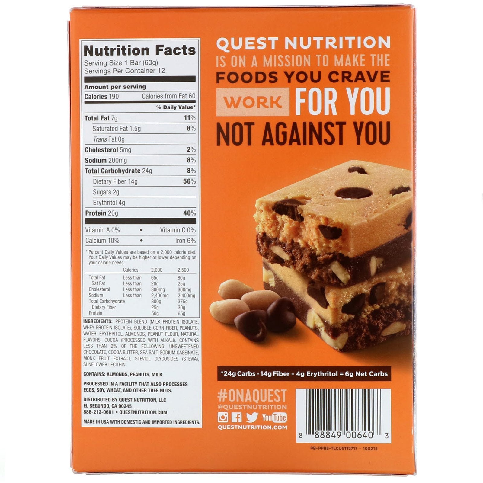 Quest Nutrition Double Layered Protein Bar Peanut Butter Brownie Smash 12 Bars 2.12 oz (60g) Each