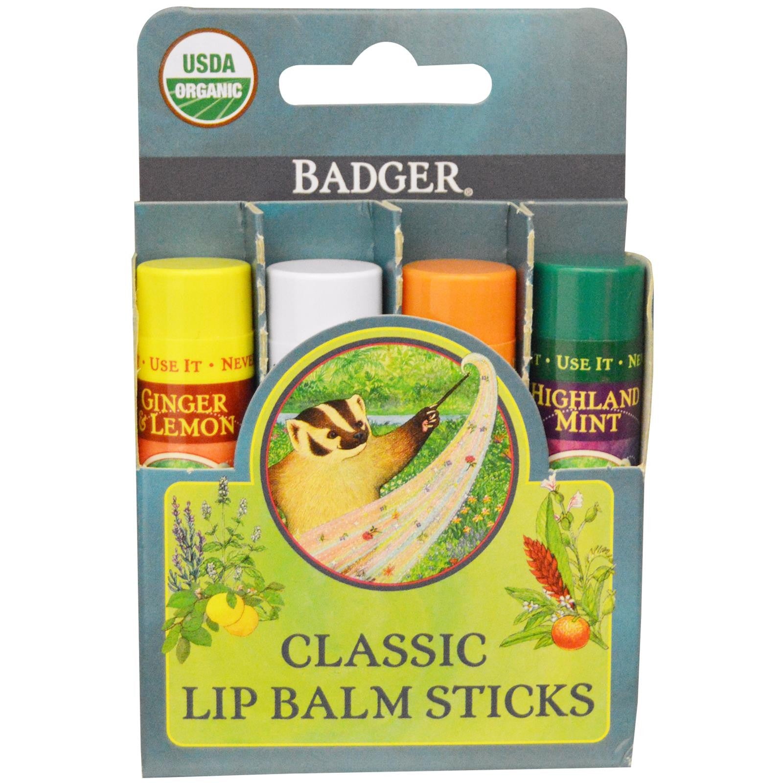 Badger Company, Classic Lip Balm Sticks, 4 Sticks, 4.2 g 0.15 oz, Each