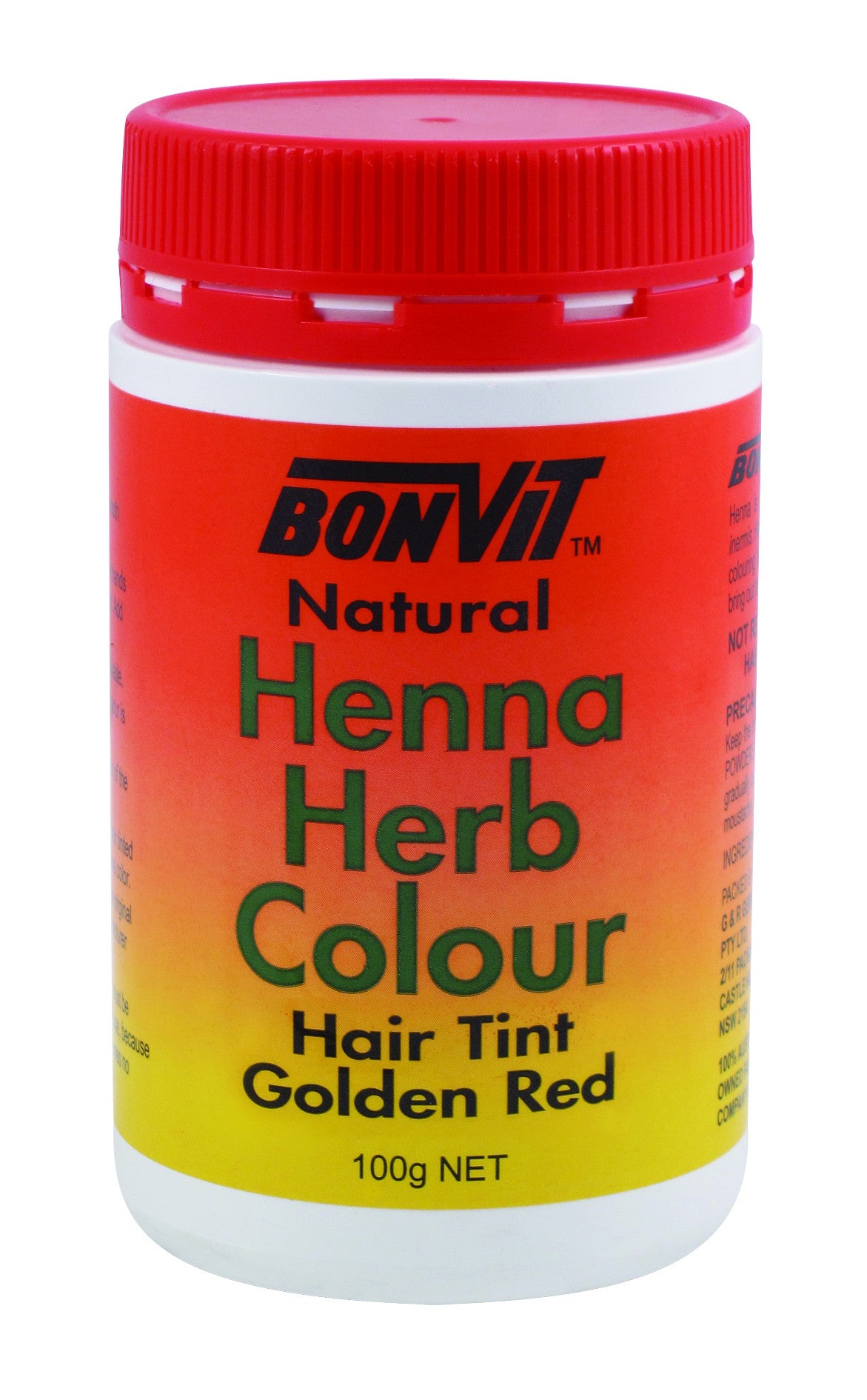 BonVit, Natural Henna Herb Colour, Hair Tint, Golden Red, 100 g