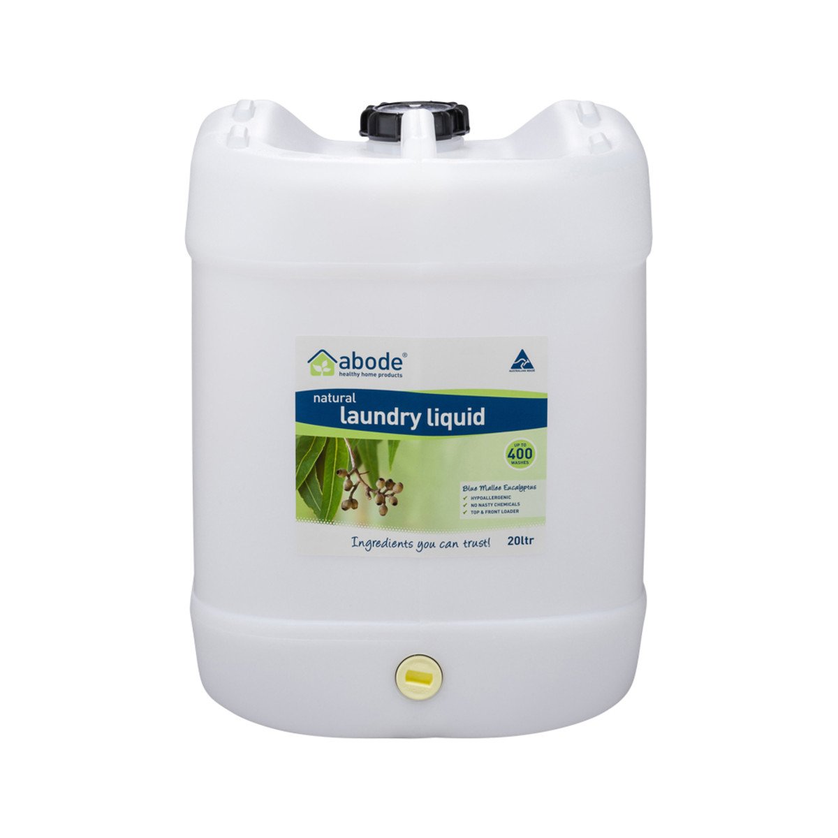 Abode Laundry Liquid (Front & Top Loader) Blue Mallee Eucalyptus 20L Drum With Tap