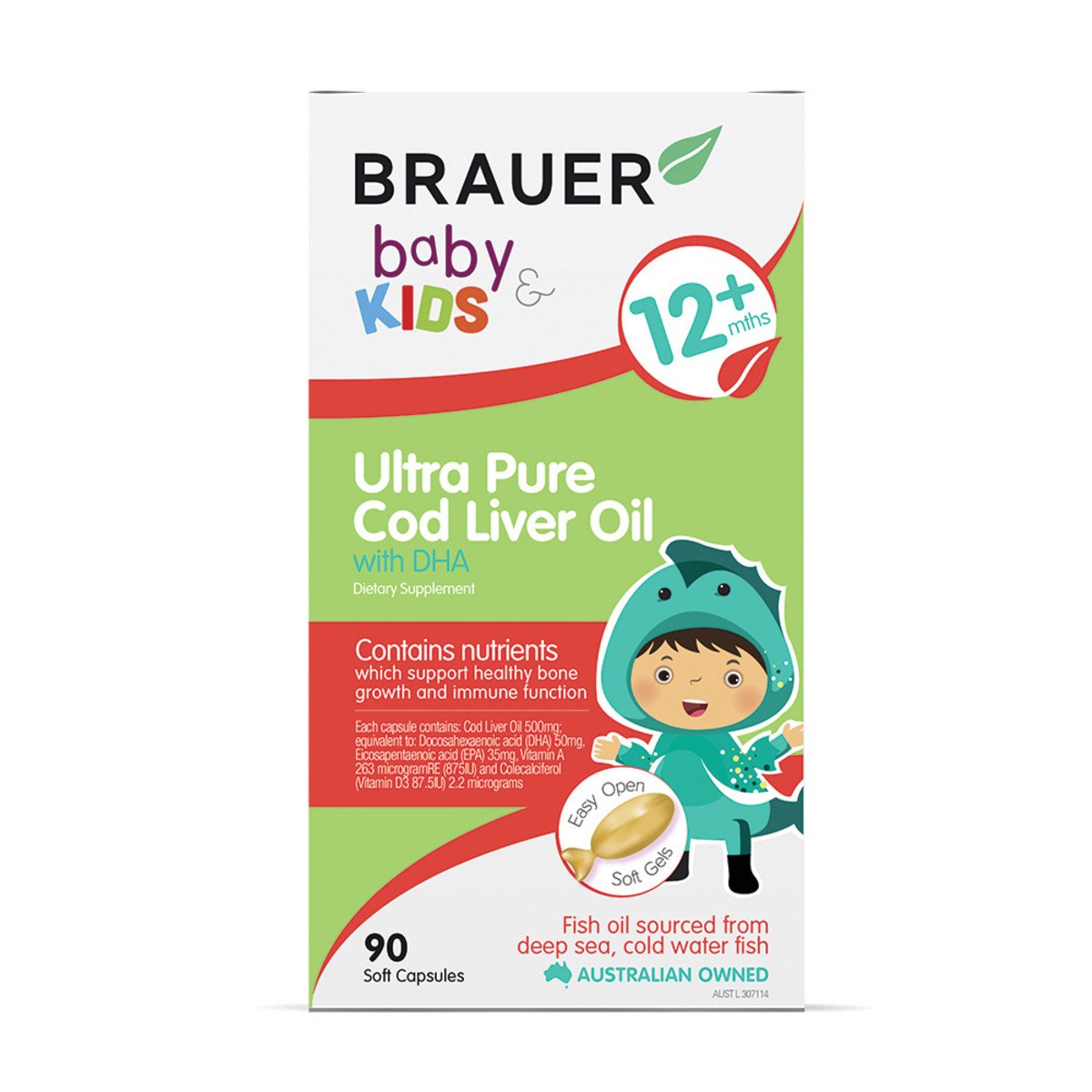 Brauer Baby And Kids Ultra Pure Cod Liver Oil With Dha 90 Capsules