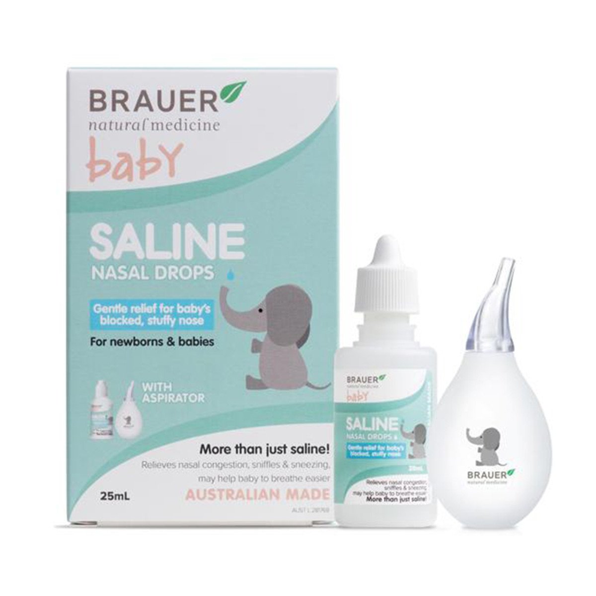 Brauer Baby Saline Nasal Drops With Aspirator 25ml