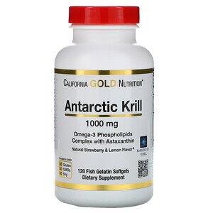 California Gold Nutrition Antarctic Krill Oil with Astaxanthin RIMFROST Natural Strawberry & Lemon Flavor 1000mg 120 Fish Gelatin Softgels