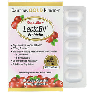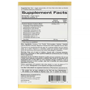 California Gold Nutrition LactoBif Probiotics Cran-Max 25 Billion CFU 30 Veggie Capsules