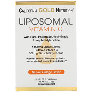 California Gold Nutrition Liposomal Vitamin C Natural Orange Flavor 1000mg 30 Packets 0.2 oz (5.7ml) Each