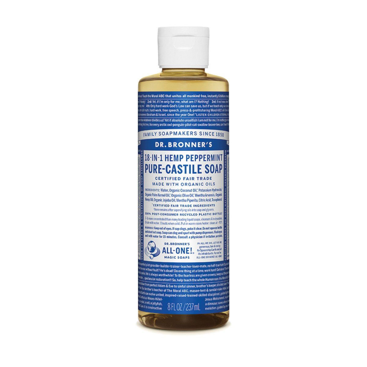 Dr.Bronner'S Pure-Castile Soap Liquid (Hemp 18-In-1) Peppermint 237ml