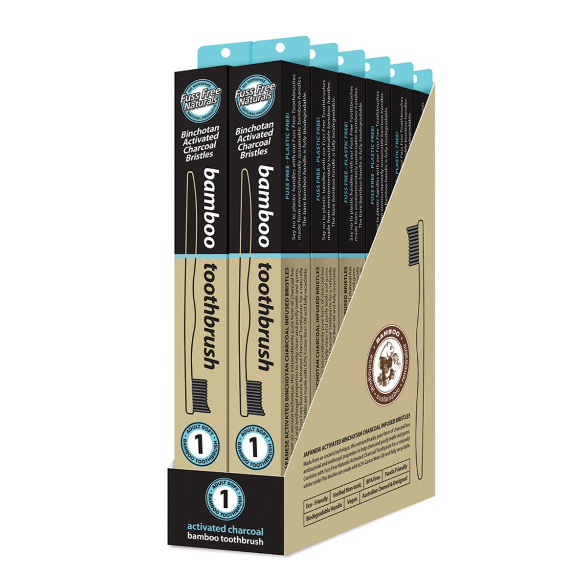 Essenzza Fuss Free Naturals Toothbrush Bamboo Activated Charcoal Soft 1x12 Display