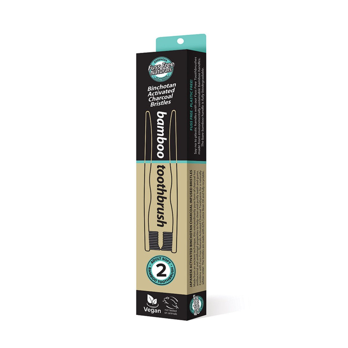 Essenzza Fuss Free Naturals Toothbrush Bamboo Activated Charcoal Soft 2Pk