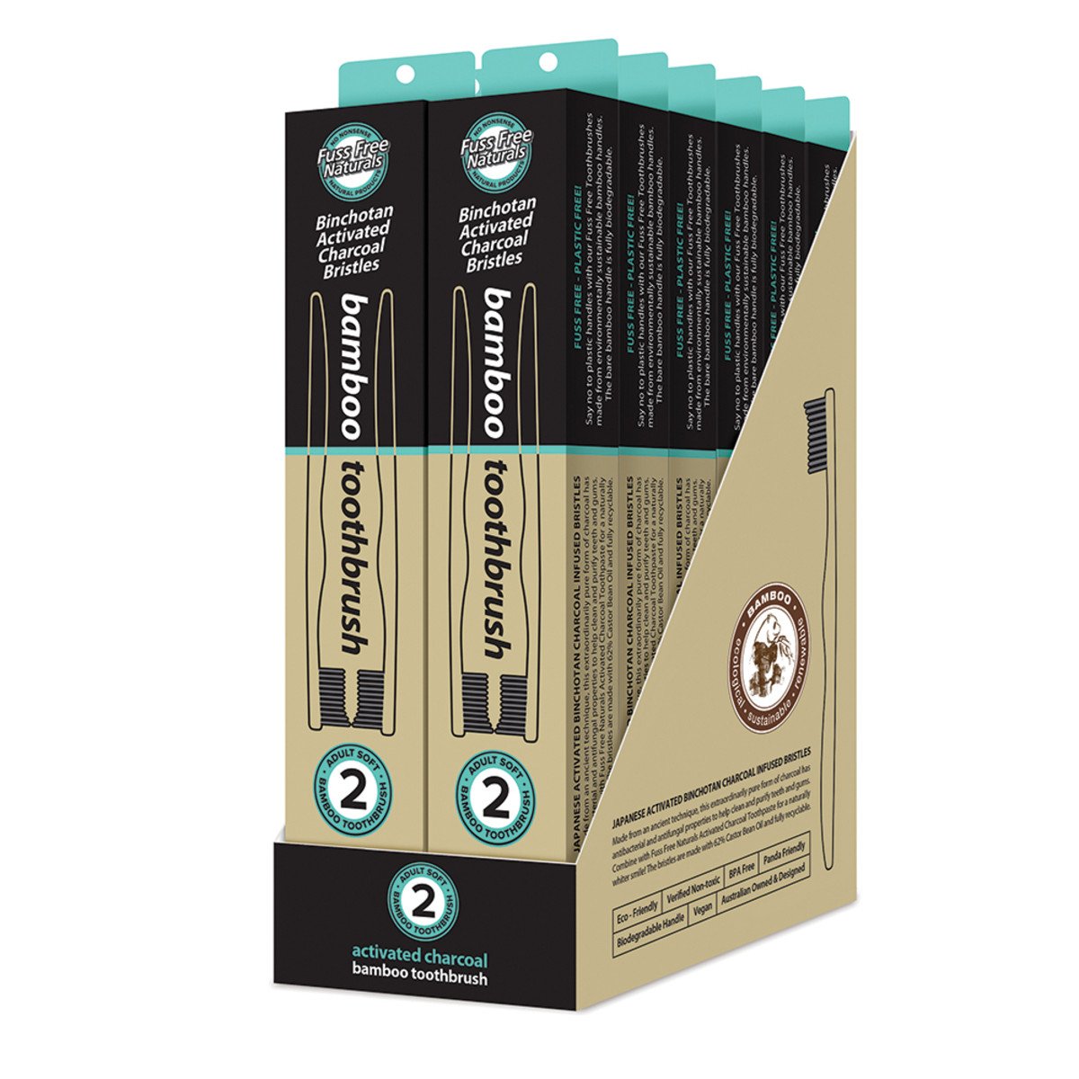 Essenzza Fuss Free Naturals Toothbrush Bamboo Activated Charcoal Soft 2x12 Display