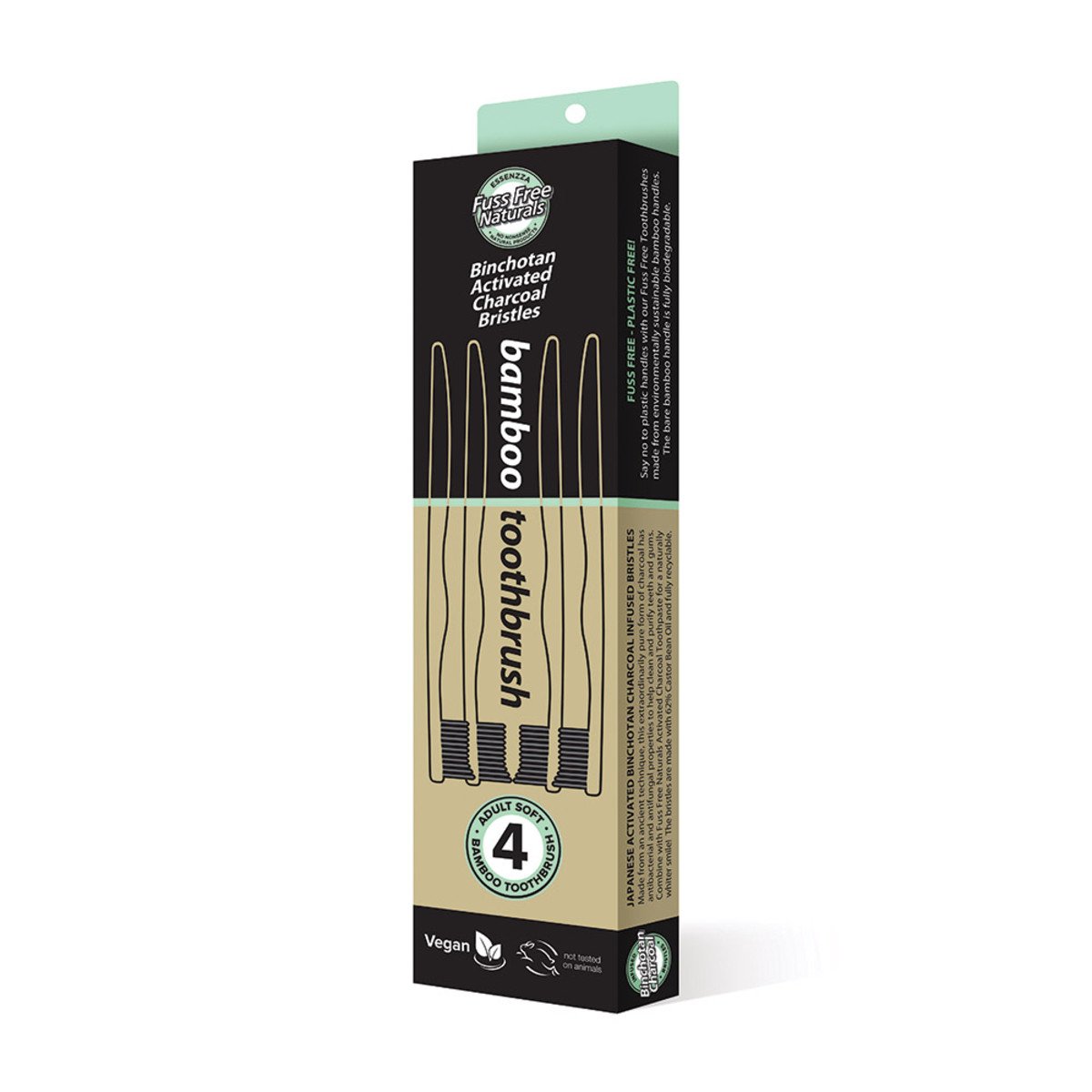 Essenzza Fuss Free Naturals Toothbrush Bamboo Activated Charcoal Soft 4 Pack