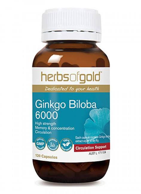 Herbs of Gold Ginkgo Biloba 6000, 120 Veggie Capsules