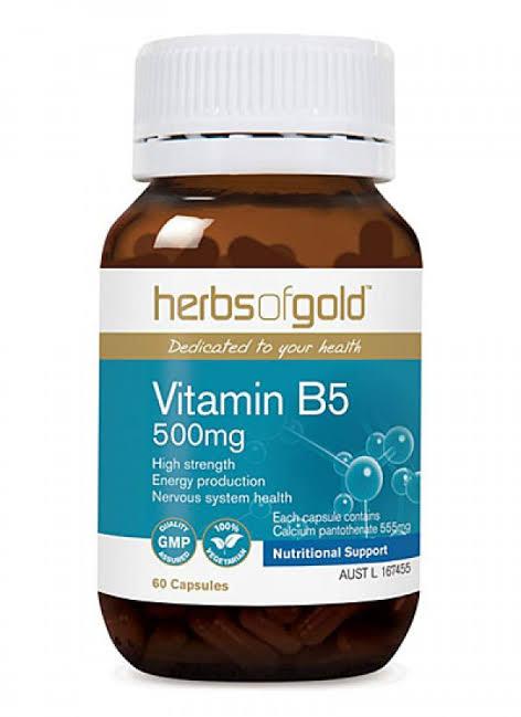 Herbs of Gold Vitamin B5 500mg 60 Veggie Capsules