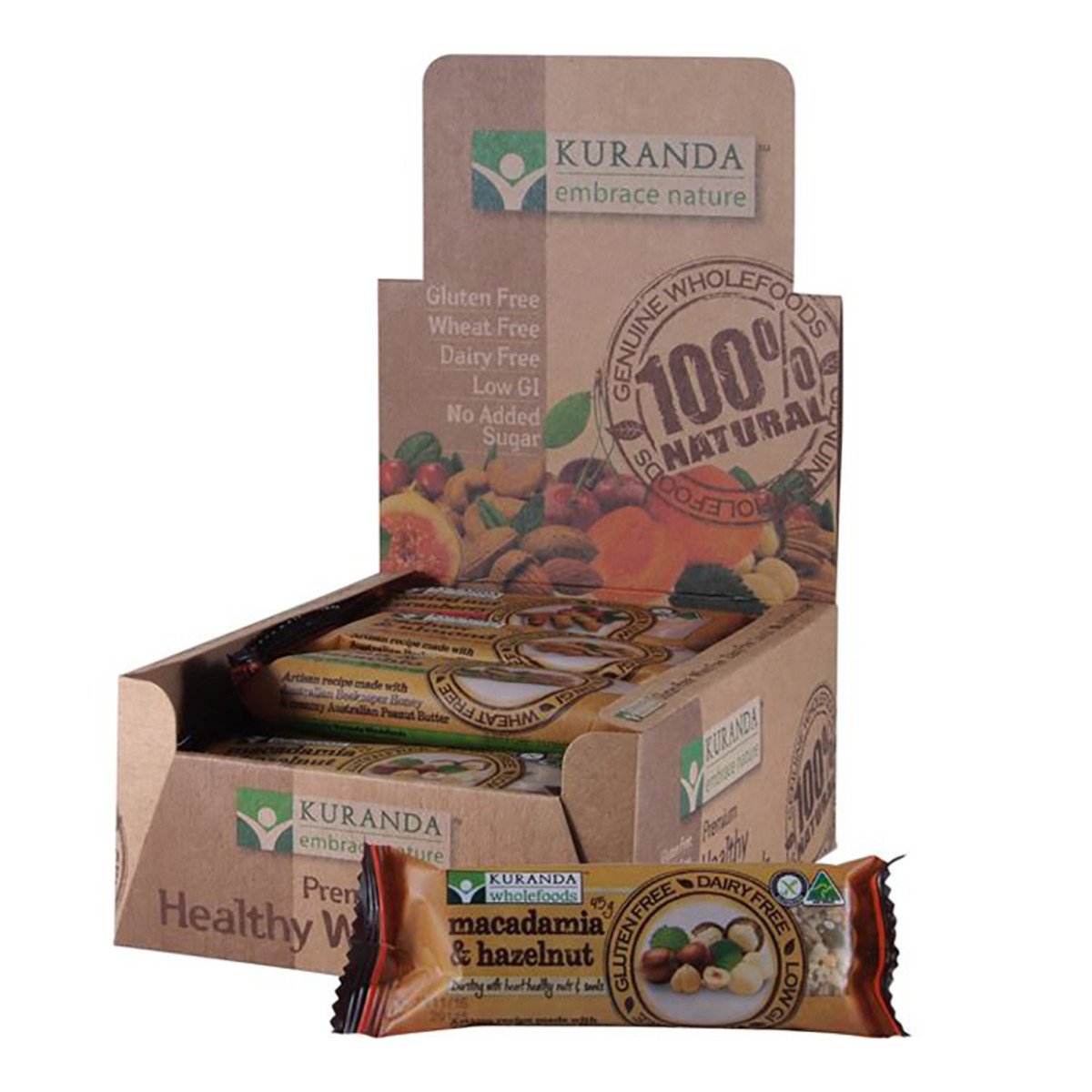 Kuranda Gluten Free Nut Bars Mixed 45g x 16 Display (Contains 4 Of Each Flavour)