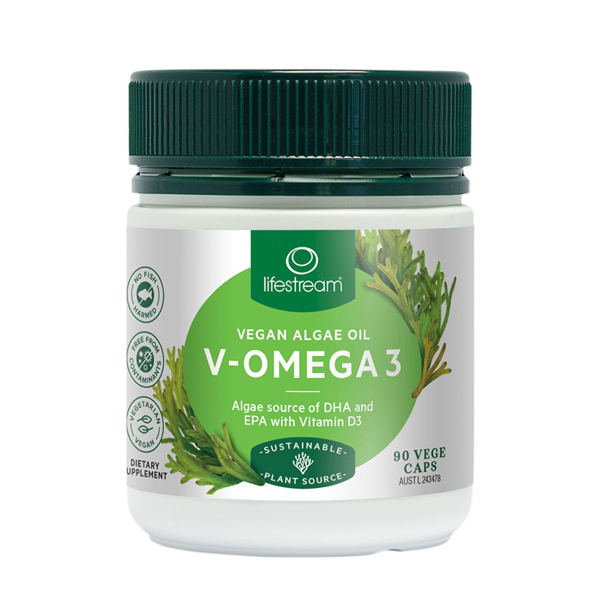 LifeStream V Omega 3 (100% Plant Dha Epa & Vit D3) 90 Veggie Capsules