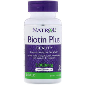 Natrol Biotin Plus Extra Strength 5,000mcg 60 Tablets