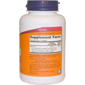 Now Foods Natural E-400 With Mixed Tocopherols 250 Softgels