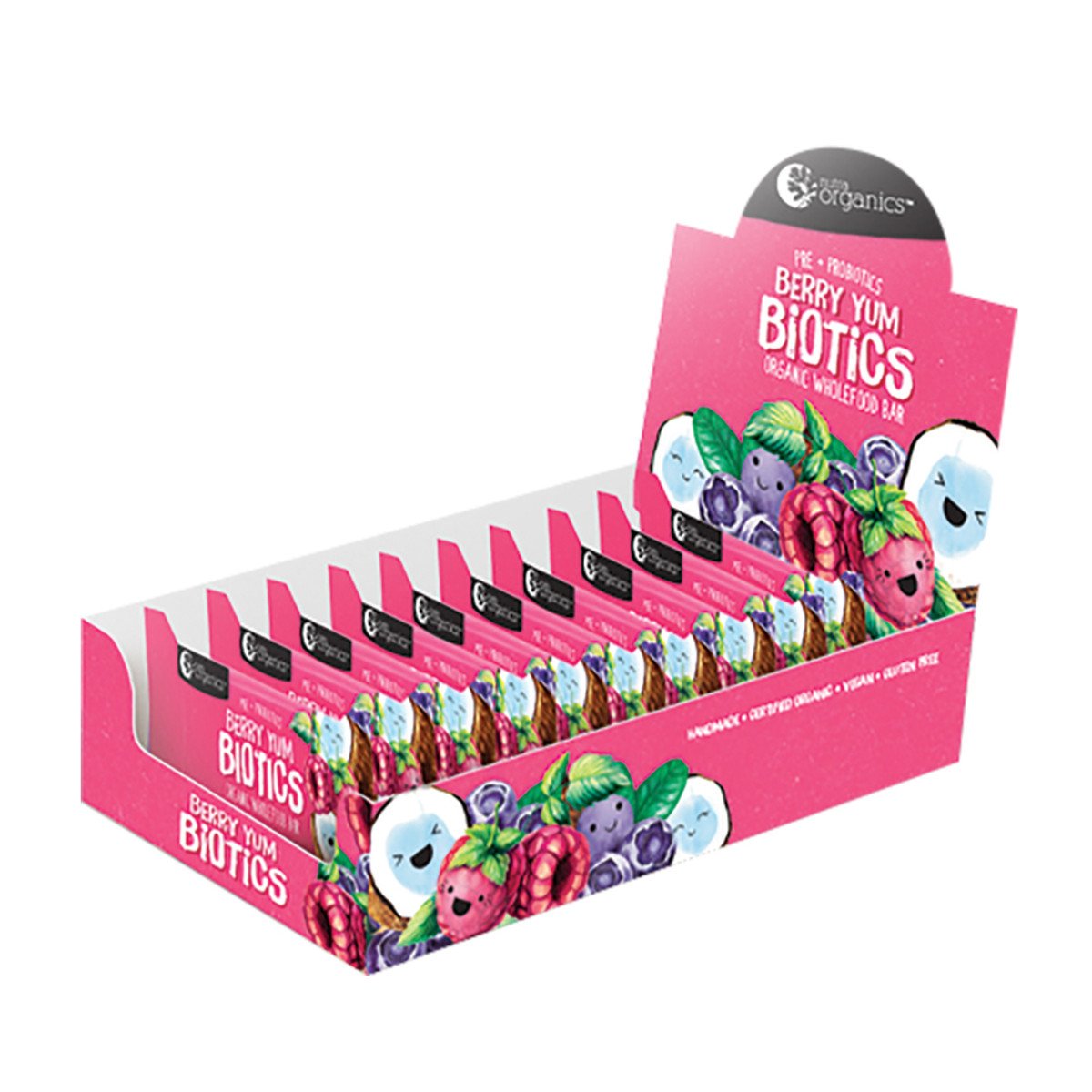 Nutra Organics Organic Wholefood Bars Berry Yum Biotics (Pre + Probiotics) 30g x 16 Display
