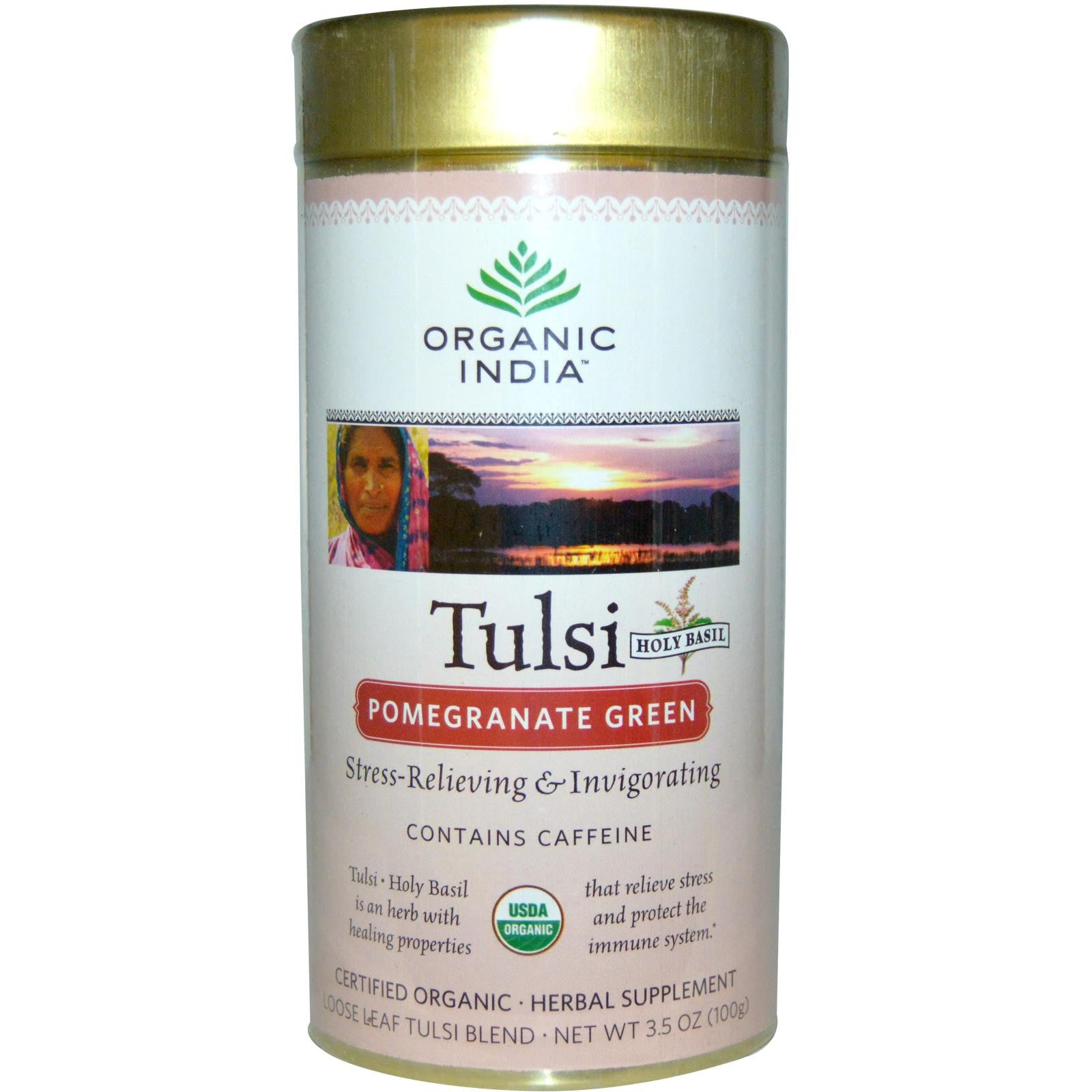 Organic India Loose Leaf Tulsi Blend Tea Pomegranate Green 100g