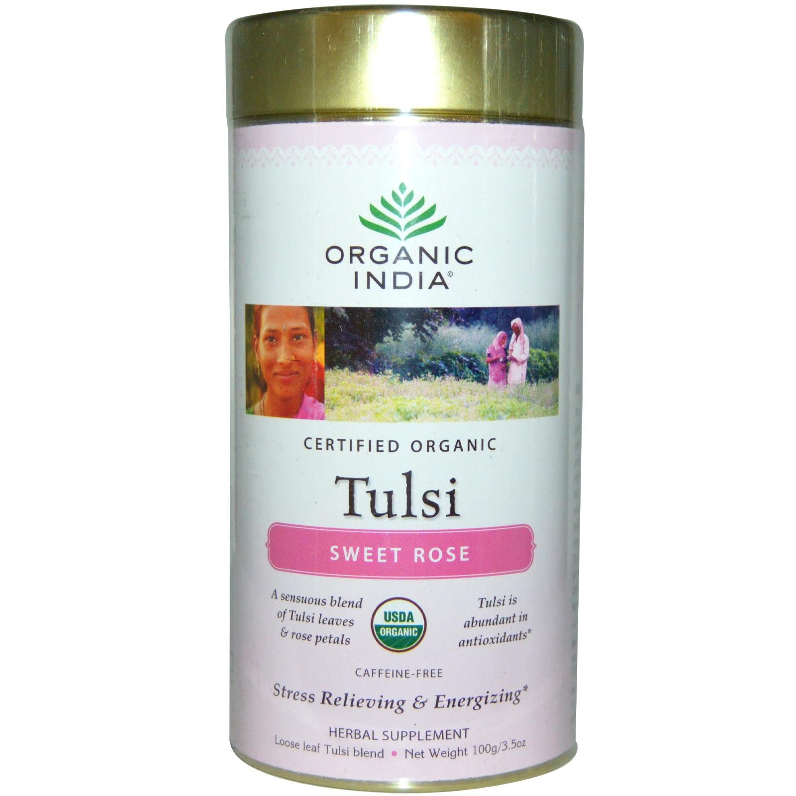 Organic India Loose Leaf Tulsi Blend Tea Sweet Rose Caffeine Free 100g