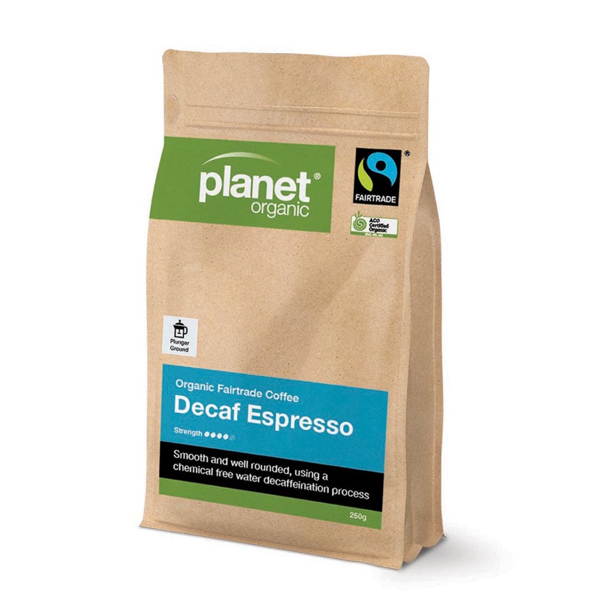 Planet Organic Coffee Espresso Decaf Plunger Ground 250g