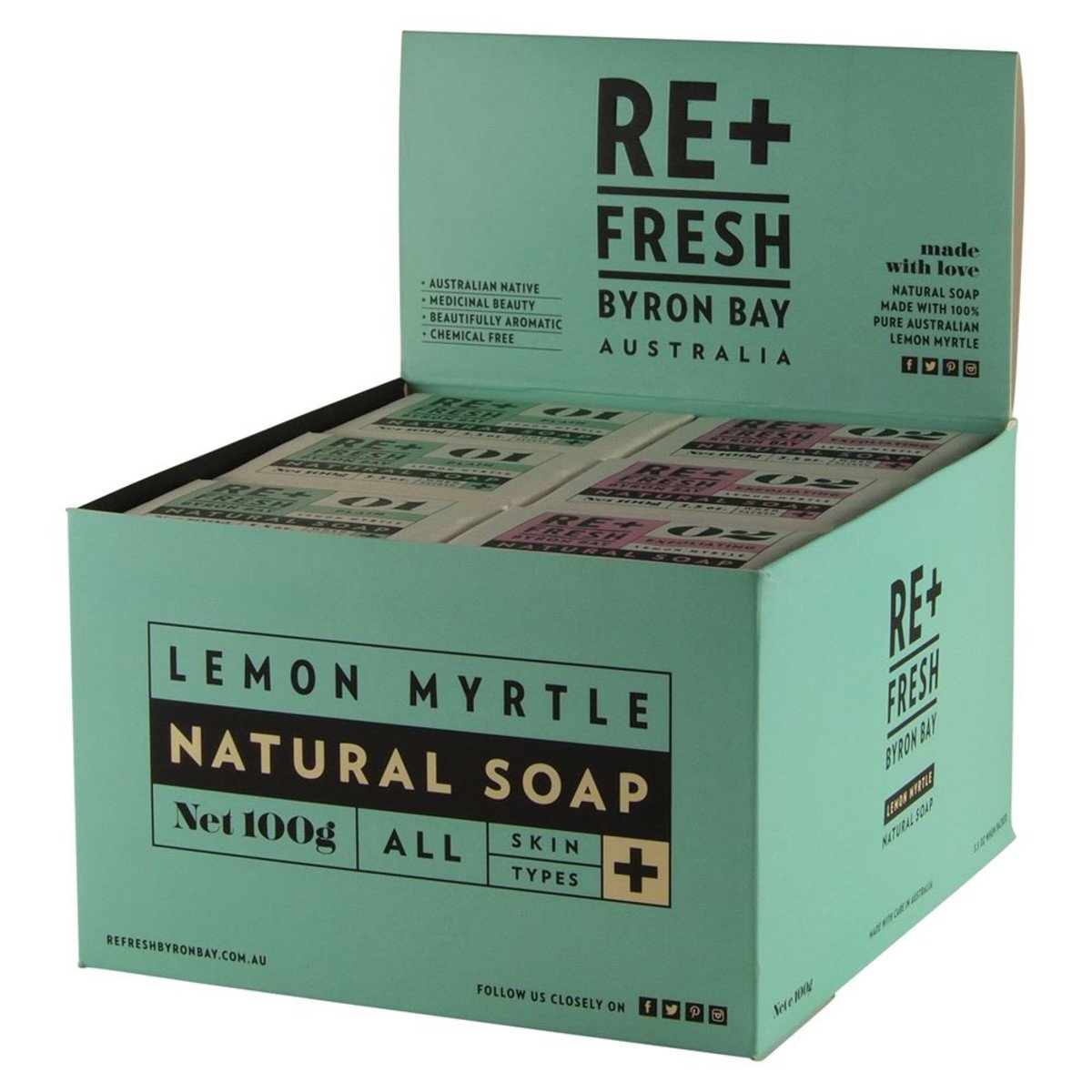 Re+Fresh Byron Bay Lemon Myrtle Natural Soap Mixed (Exfoliating & Plain) 100g x 24 Display