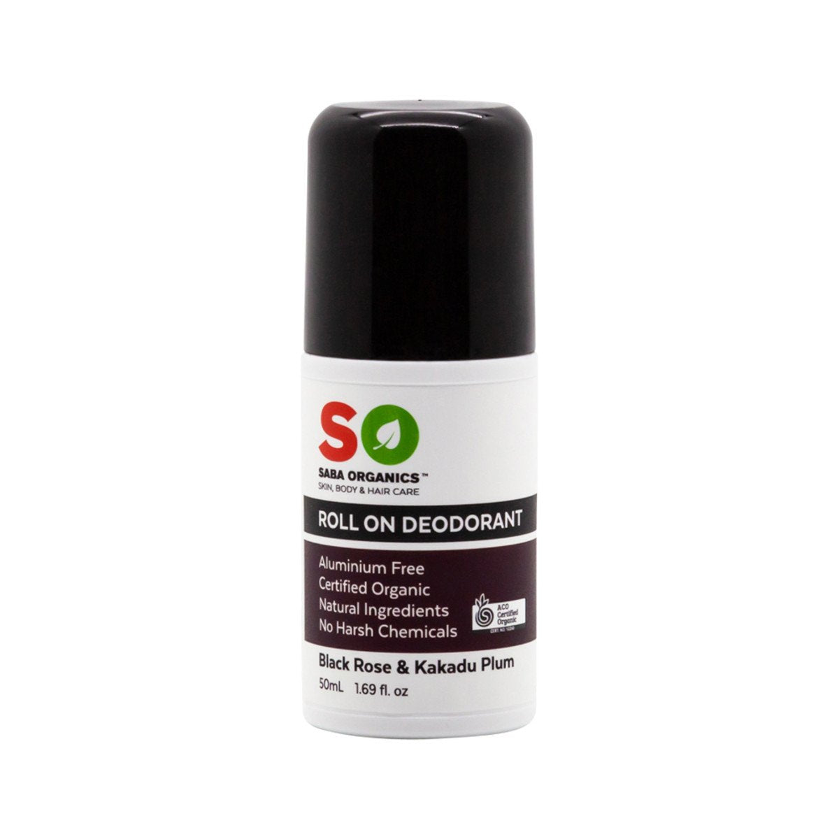 Saba Organics Certified Organic Deodorant Roll On Black Rose & Kakadu Plum 50ml