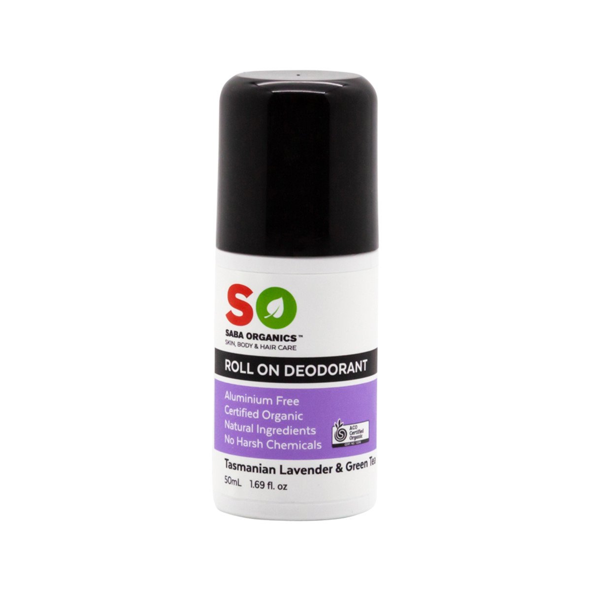 Saba Organics Certified Organic Deodorant Roll On Tasmanian Lavender & Green Tea 50ml