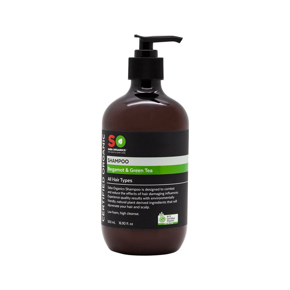 Saba Organics Certified Organic Shampoo Bergamot & Green Tea (All Hair Types) 500ml