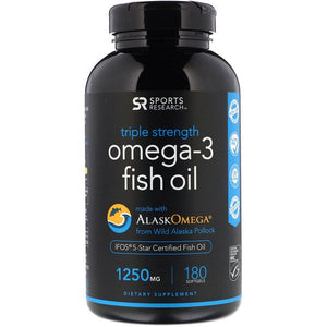 Sports Research Omega-3 Fish Oil Triple Strength 1250mg 180 Softgels