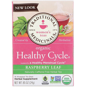 Traditional Medicinals Women's Teas Organic Healthy Cycle Raspberry Leaf Caffeine Free Herbal Tea 16 Wrapped Tea Bags .85 oz (24g)