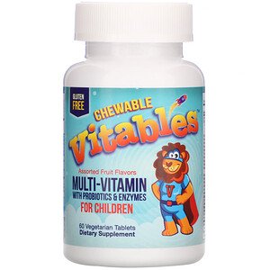 Vitables Chewable Multi-Vitamins with Probiotics & Enzymes for Children Assorted Fruit Flavors 60 Vegetarian Tablets