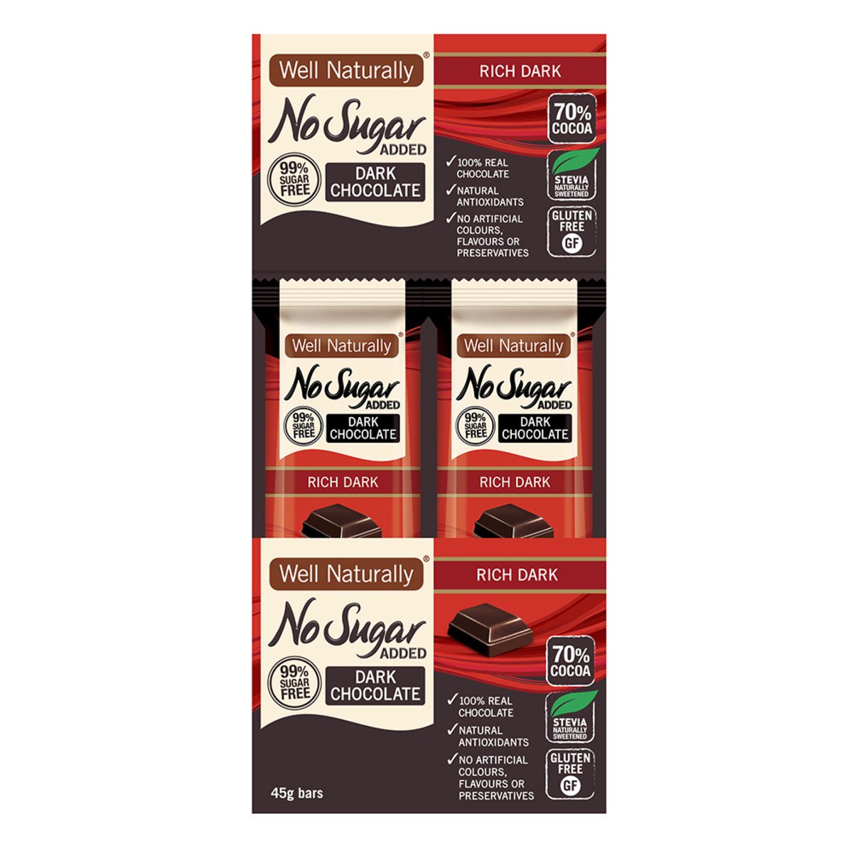 Well Naturally No Added Sugar Bar Dark Chocolate Rich Dark 45g x 16 Display