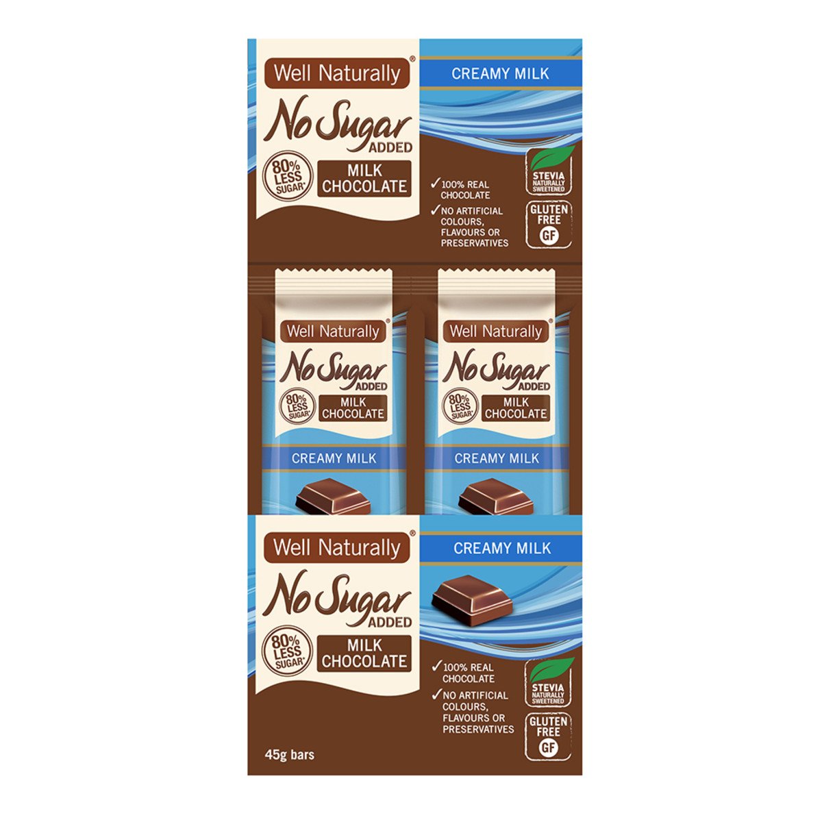 Well Naturally No Added Sugar Bar Milk Chocolate Creamy Milk 45g x 16 Display