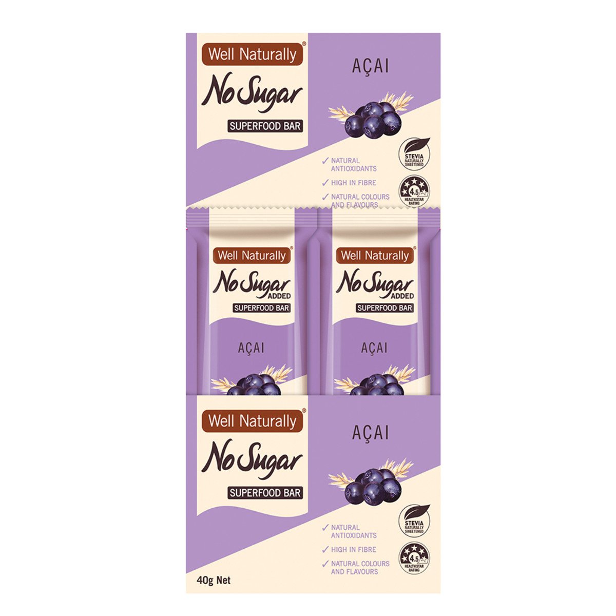 Well Naturally No Added Sugar Bar Super Food Acai 40g x 16 Display