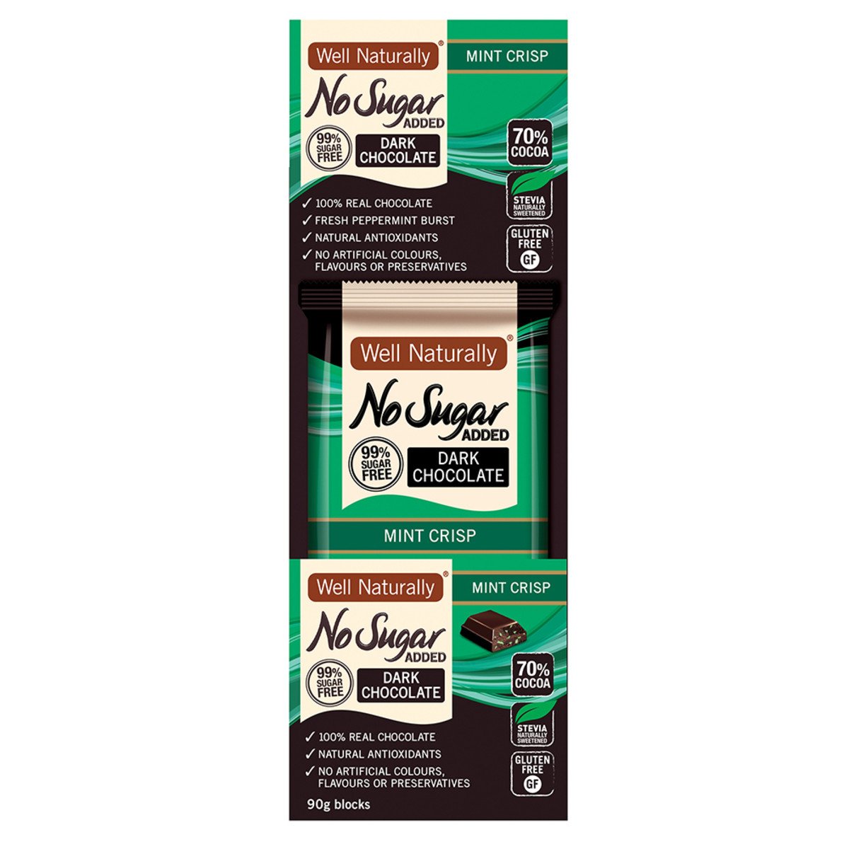 Well Naturally No Added Sugar Block Dark Chocolate Mint Crisp 90g x 12 Display