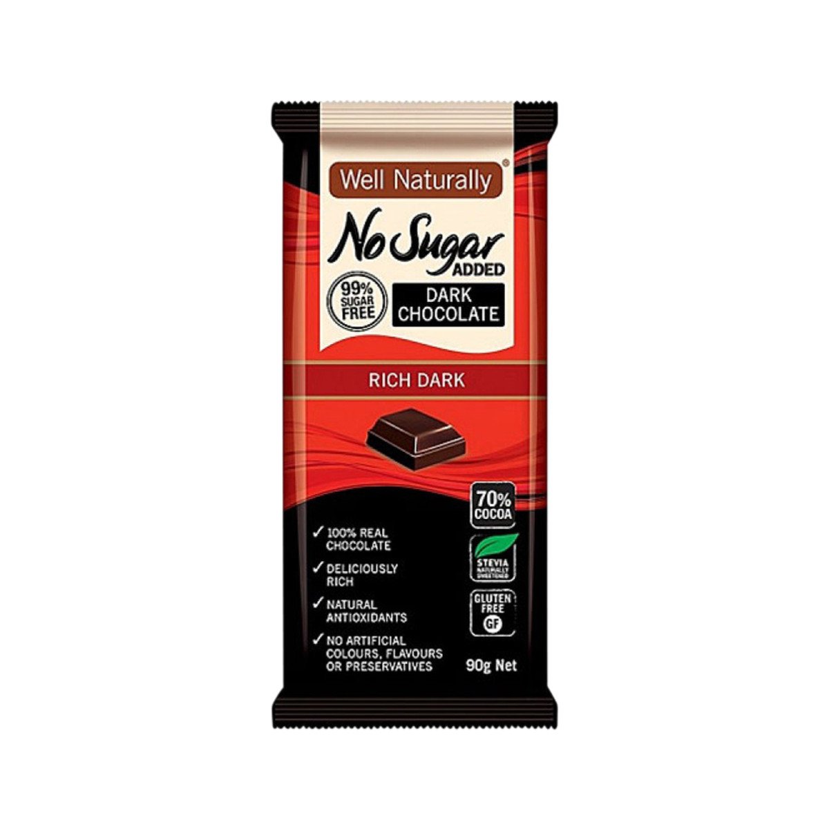 Well Naturally No Added Sugar Block Dark Chocolate Rich Dark 90g