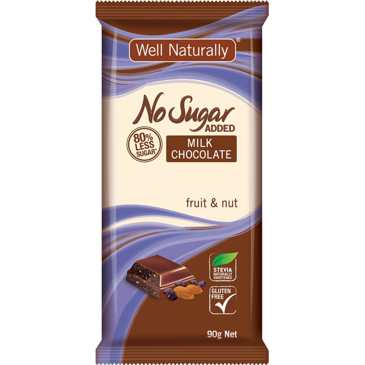Well Naturally No Added Sugar Block Milk Chocolate Fruit & Nut 90g