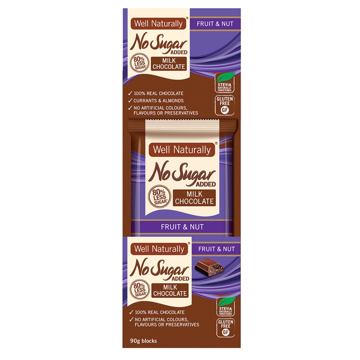 Well Naturally No Added Sugar Block Milk Chocolate Fruit & Nut 90g x 12 Display
