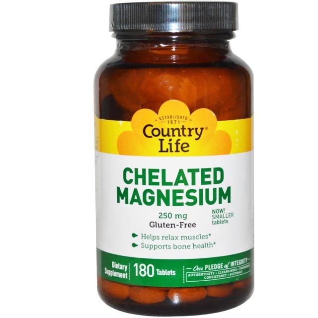 Country Life, Gluten Free, Chelated Magnesium, 250 mg, 180 Tablets