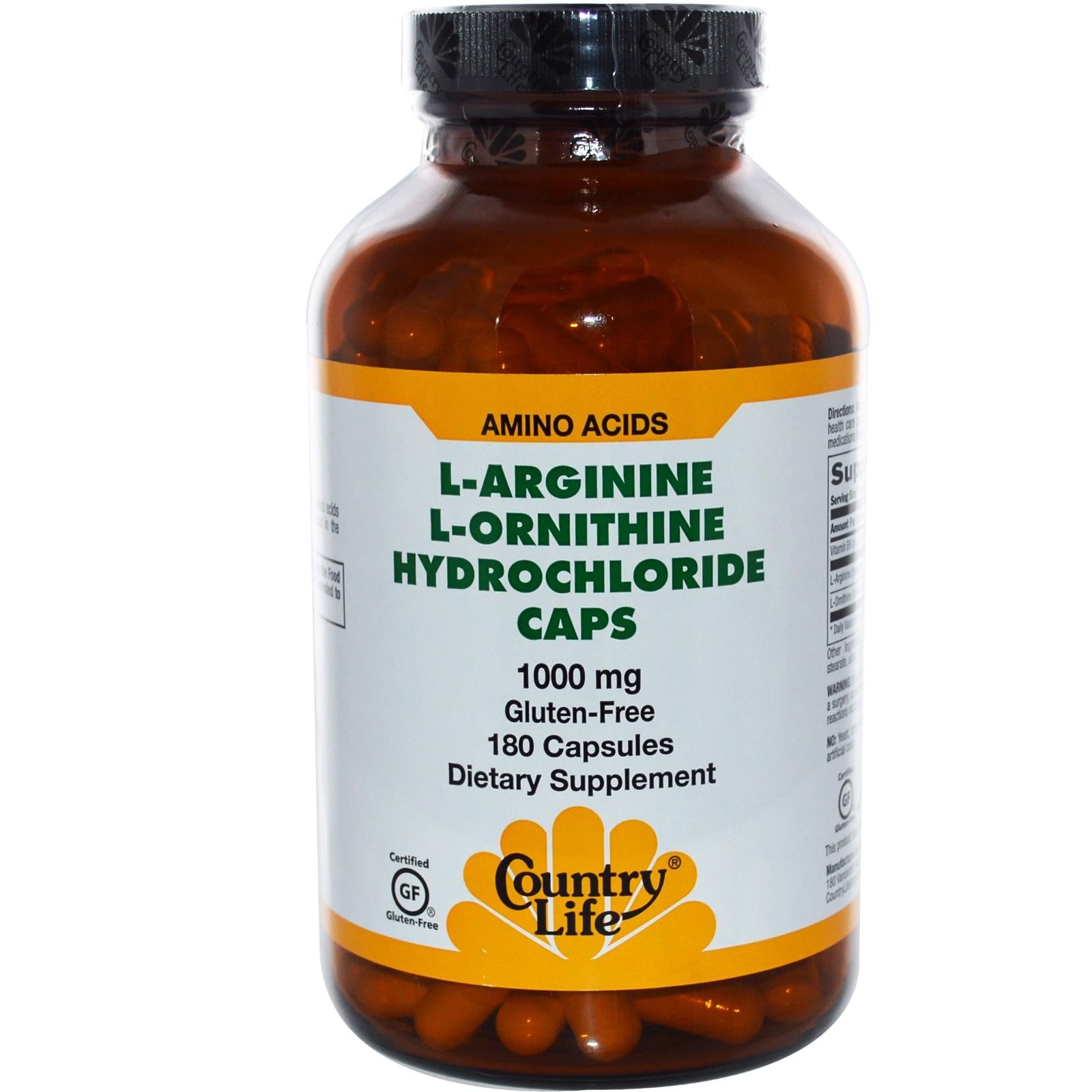 Country Life Gluten Free L-Arginine L-Ornithine Hydrochloride Caps 1000 mg 180 Capsules