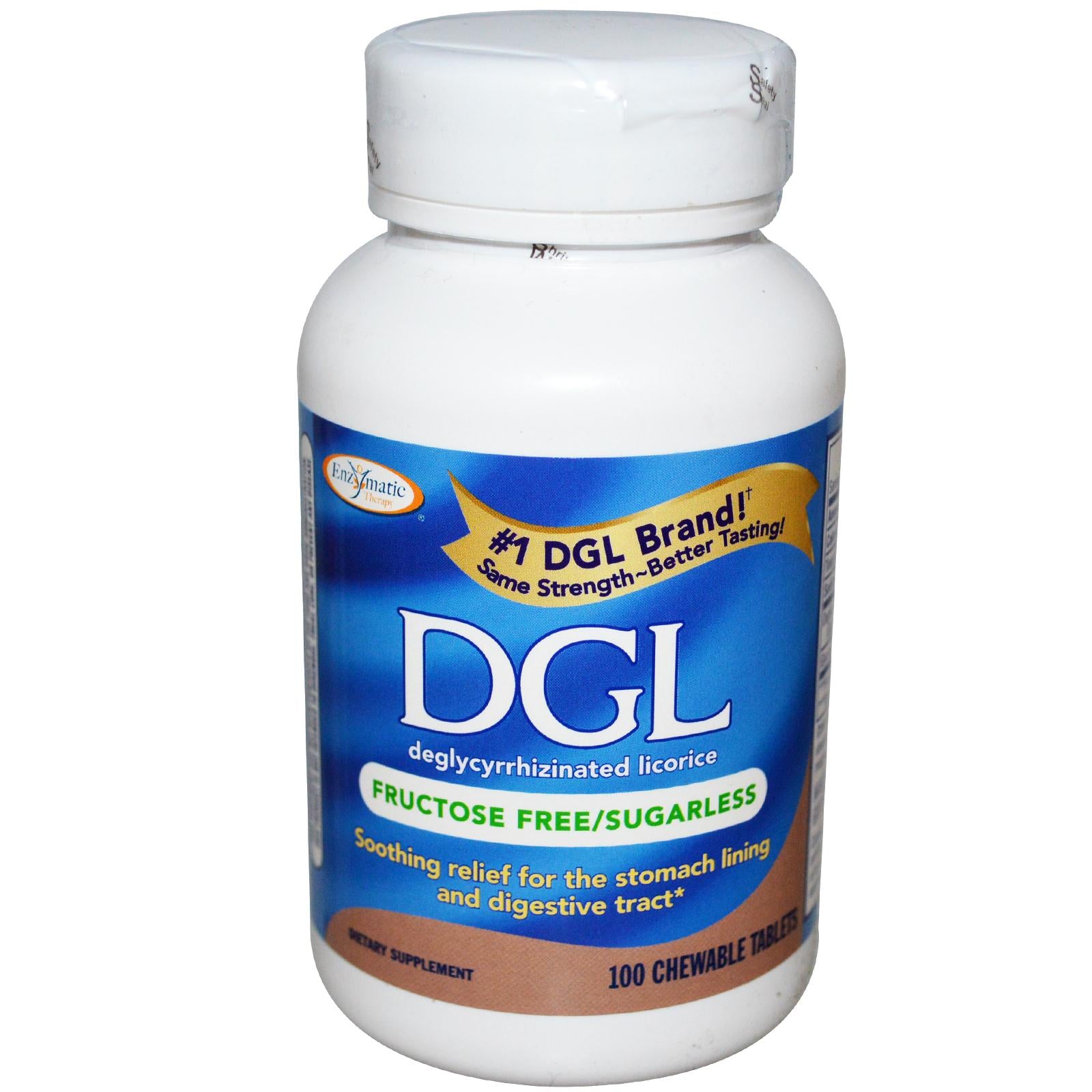 Enzymatic Therapy DGL Deglycyrrhizinated Licorice Fructose Free Sugarless 100 Chewable Tablets