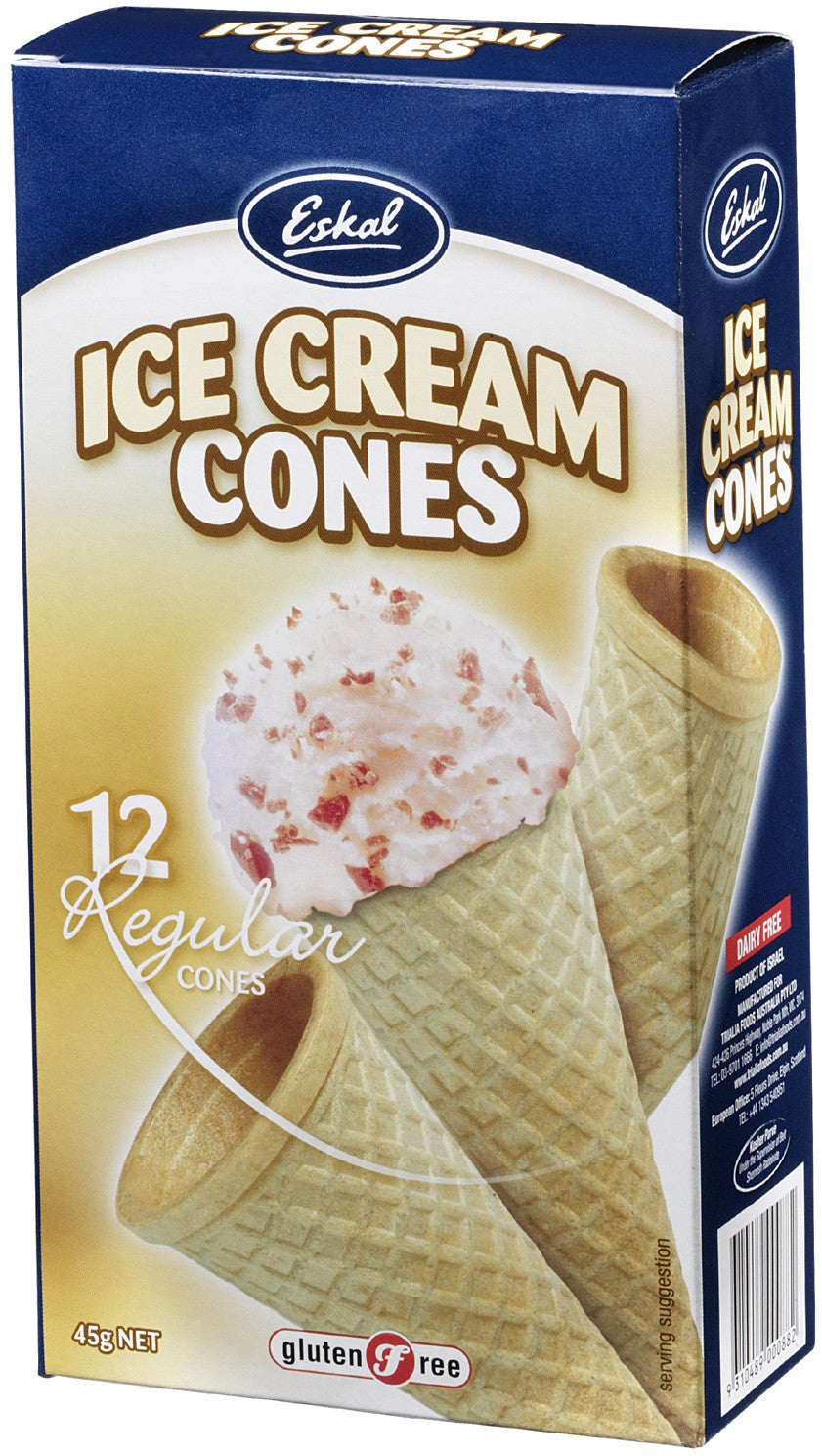 Eskal, Ice Cream Cones, Gluten Free & Dairy Free, 12 Regular Cones, 45 g
