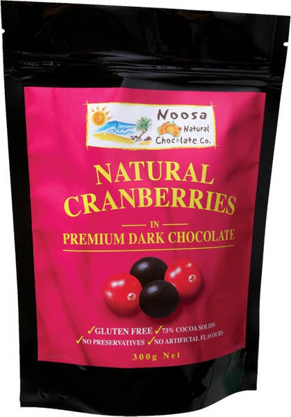 Noosa Natural Chocolate Co., Natural Cranberries in Dark Chocolate, 300 g