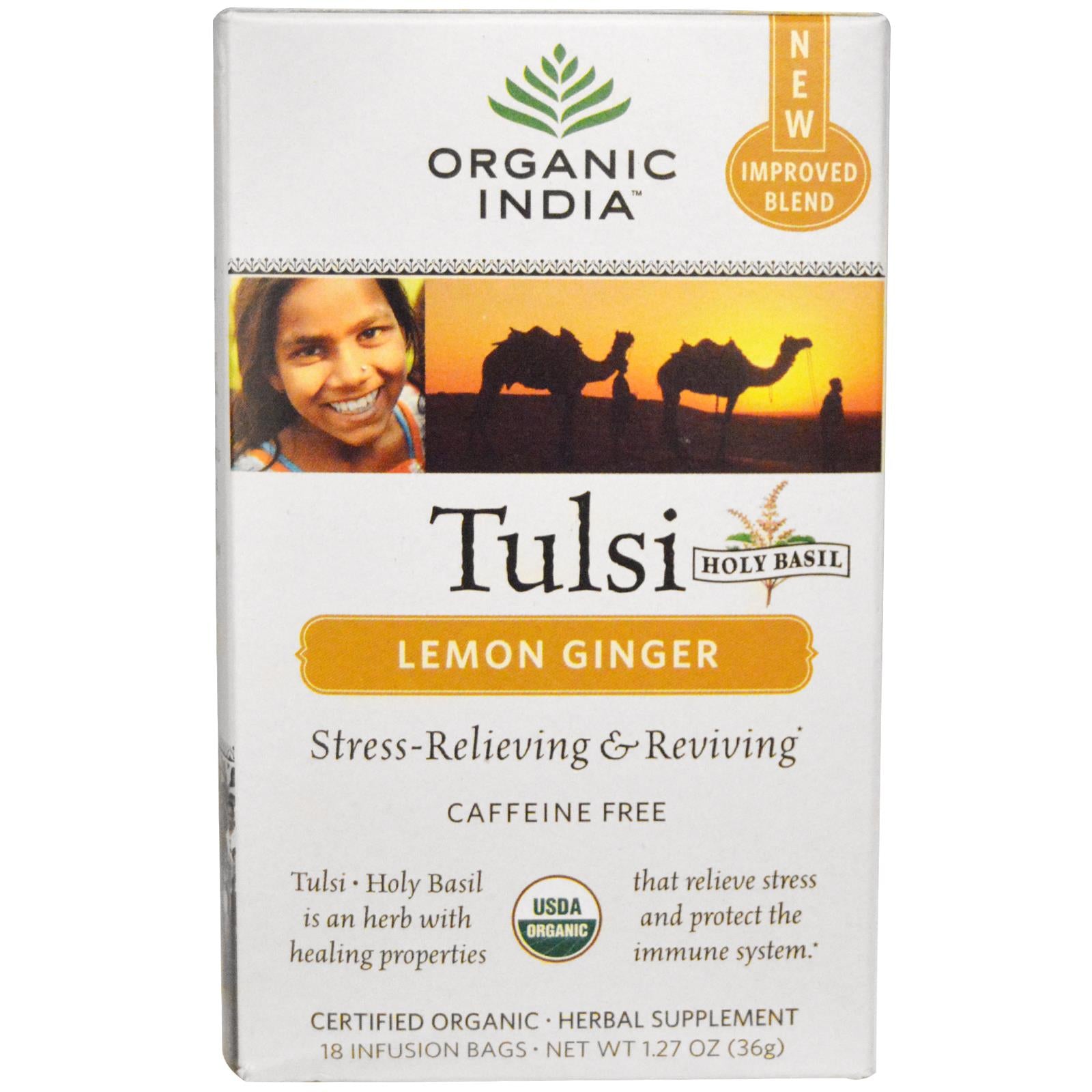 Organic India, Tulsi Holy Basil, Lemon Ginger, Caffeine Free, 18 Infusion Bags, 36 gs