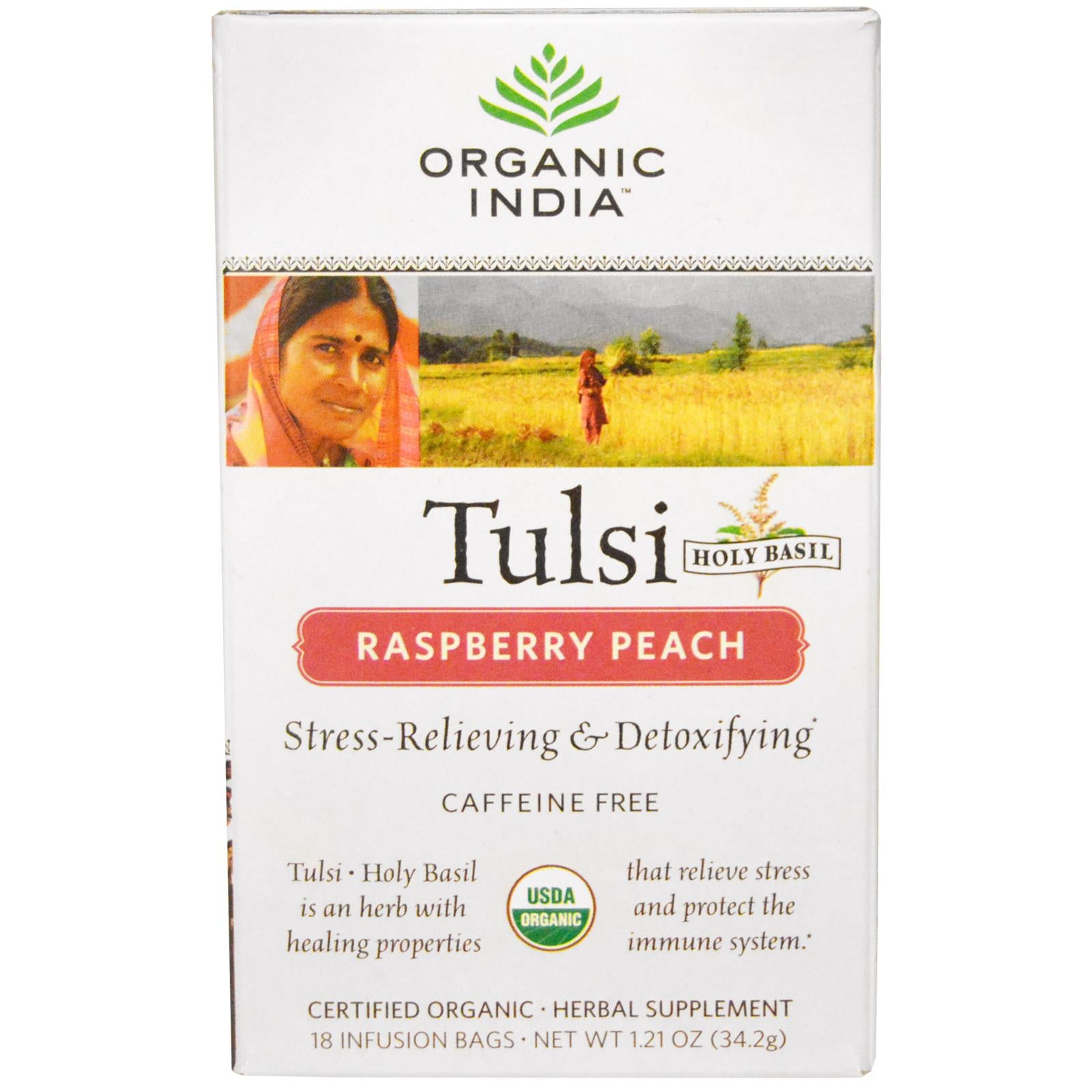 Organic India, Tulsi Holy Basil, Raspberry Peach, Caffeine Free, 18 Infusion Bags, 34.2 gs