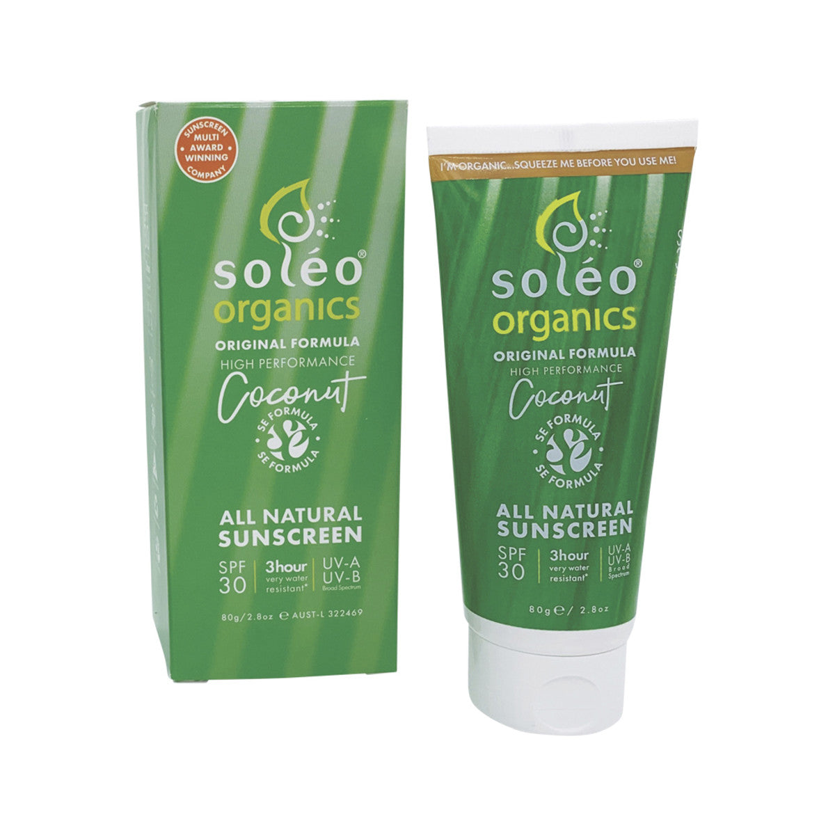 Soleo Organics All Natural Sunscreen SPF30 Original Formula (High Performance) Coconut 80g