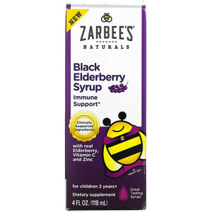 Zarbee's, Black Elderberry Syrup with Real Elderberry, Vitamin C and Zinc, For Children 2 Years +, 4 fl oz (118 ml)